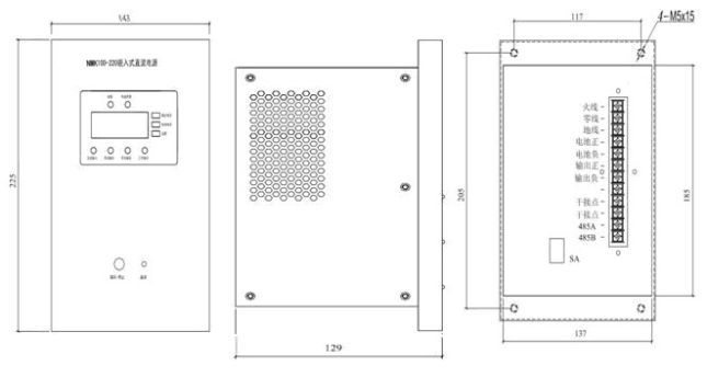 2、整流、監控、配電、電池一體化設計;